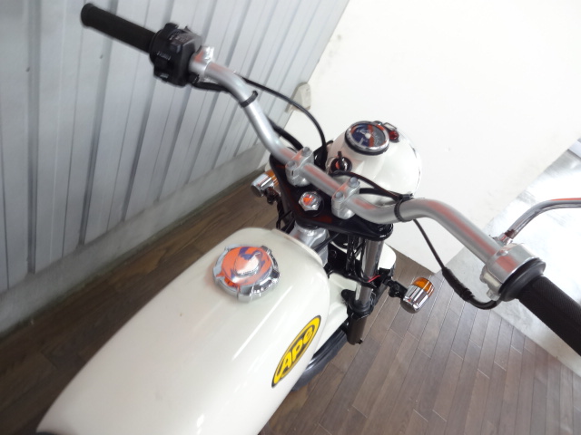 ハンドル回りはノーマルです、ちょっとアップハンドルにするといいかもしれません。