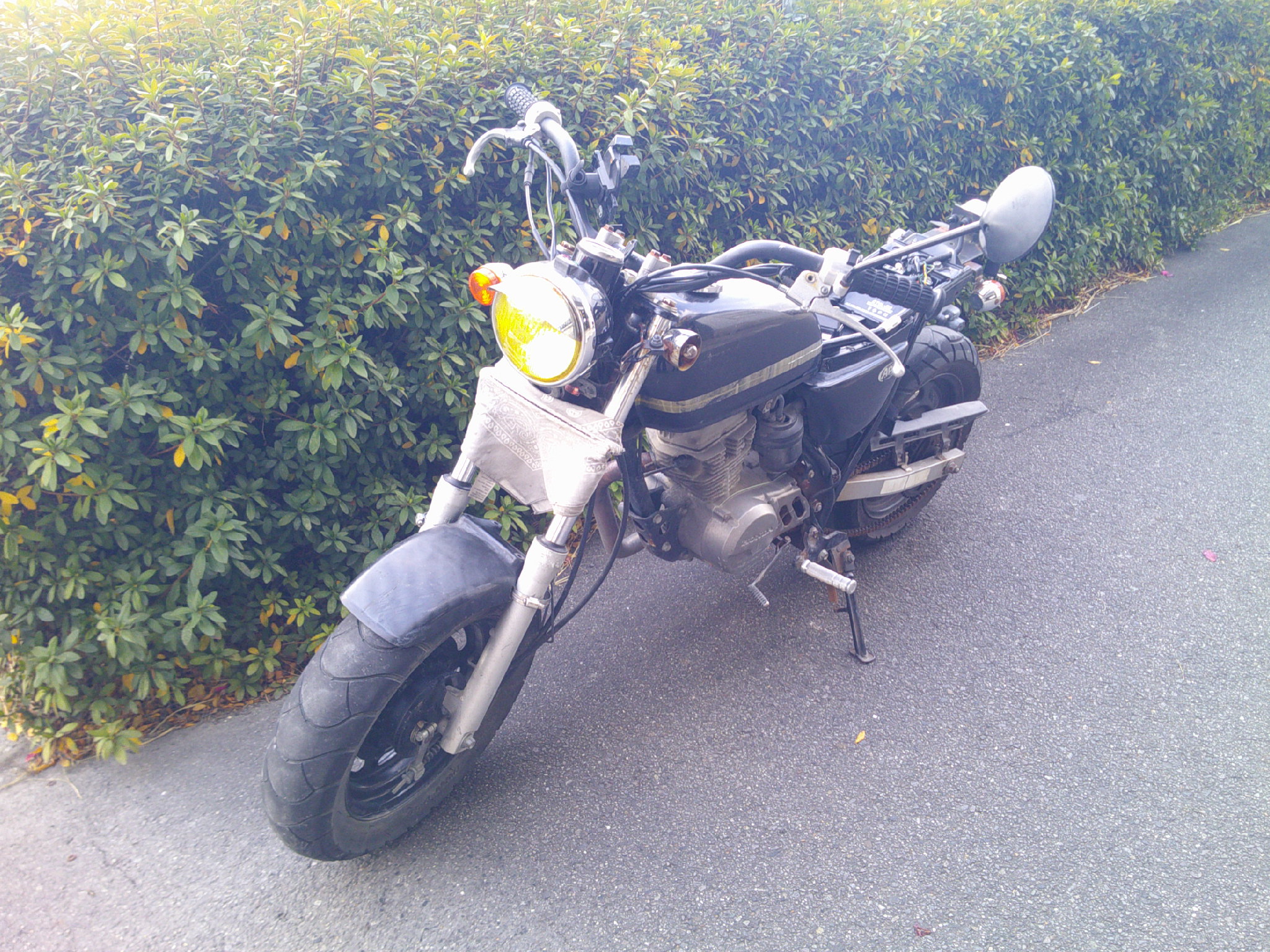 エンジンがかからずシートもない状態で、チェーンも外れかけておりましたが